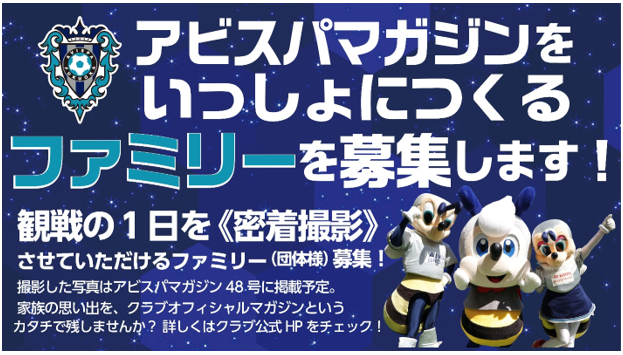 5月末に発売予定のアビスパ福岡オフィシャルマガジン最新号『AVISPA MAGAZINE VOL.48』の制作にご協力いただけるファミリー・団体様を募集いたします。