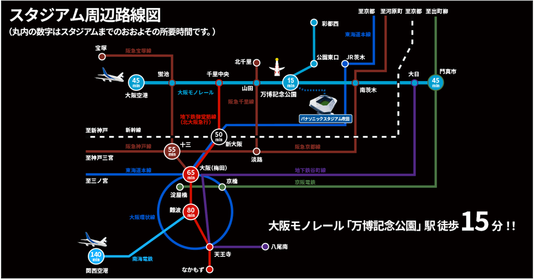 詳細はガンバ大阪ホームページ「アクセスガイド」をご確認ください。