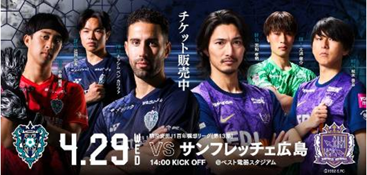4月29日(水・祝) 14:00 サンフレッチェ広島戦