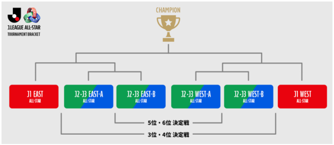 | 大会方式 | 明治安田Jリーグ百年構想リーグの6つの地域グループごとに構成されたオールスターチームによる1DAYトーナメント方式を実施(全7試合) 1試合30分(前後半なし) ※3位・5位決定戦は20分(前後半なし) |