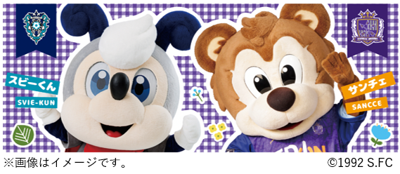 4月29日(水・祝)サンフレッチェ広島戦にて、アビスパ福岡のマスコット「スビーくん」と、サンフレッチェ広島のマスコット「サンチェ」のコラボグッズを販売いたします。